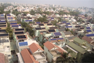 According to Sourabh Sen, a private developer of large PV arrays, India currently stands as the world’s fifth largest consumer of energy. Clearly, cooperation and communication among multiple parties will be required to achieve the government’s ambitious energy goals. Vatsal Bhatt, of the Brookhaven National Laboratory, outlined the partnerships already in place between India and the U.S. Department of Energy. In addition, India is seeking the input of individuals, like Sen, who provide a private sector perspective on the bankability of such proposals. Regardless, what drives Indian government officials, private developers, planners, and scientists toward the physical implementation of such bold plans is the seductive vision of a nation with photovoltaic panels on the roofs of most houses (as illustrated in the rendering above).