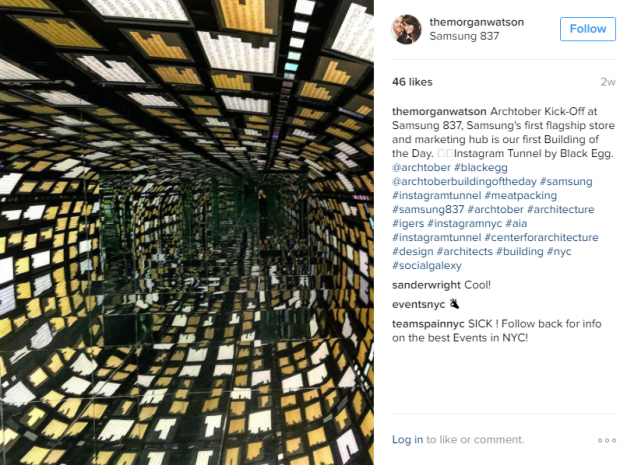 The cool flurry of Archtober activity went viral as satisfied participants shared their love of ice cream and architecture on Twitter and Instagram. Samsung 837, with its three-story selfie-projecting screen, Social Galaxy, an interactive Instagram installation, and a 360-degree selfie station, was the perfect place for followers to engage with Archtober and Samsung’s social platforms.