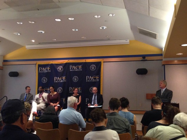 Chris Goeken, New York League of Conservation Voters; Cecil Corbin-Mark, WE ACT; Raya Salter, NRDC; Abigail Dillen, Earthjustice; Lemuel Srolovic, NYS Attorney General’s Office; Karl Rábago, Energy and Climate Center at Pace Law School