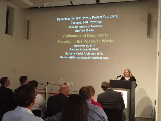 On 09.10.15, the AIANY Design for Risk and Reconstruction Committee organized a panel on cybersecurity, providing guidelines for how to continually protect firms of all sizes from digital risk. Essential to resiliency and business continuity, cybersecurity includes practices such as securing financial accounts and critical data from hackers, and protecting a company’s reputation and brand on the Internet.