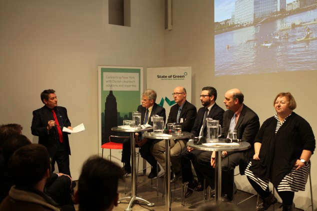 Speakers: Lykke Leonardsen, Head of Climate, The City of Copenhagen; Roland Lewis, CEO, Metropolitan Waterfront Alliance; Dan Hasløv, CEO, Hasløv Kjærsgaard; Kent Martinussen, CEO, Danish Center for Architecture; Ole Svenstrup Peterson, Head of Innovation, DHI Group; Michael Marella, Director of Waterfront and Open Space Planning, NYC Department of City Planning; Dan Zarilli, Director, Mayors Office of Recovery and Resiliency; and Rick Bell, FAIA, Executive Director, AIANY | Center for Architecture (Introduction)