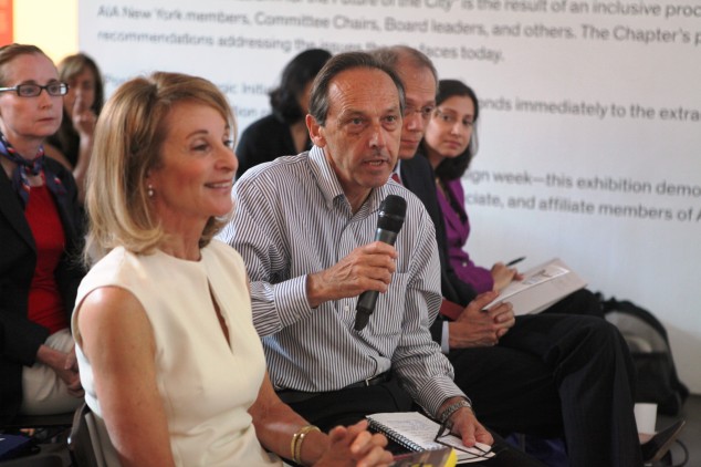 The media spotlight during the first month of the Citi Bike program has been bright enough that half the audience questions submitted to moderator Rick Bell, FAIA, AIANY executive director, concerned bicycles. Despite certain overamplified naysayers’ assumption that Citi Bike was sprung overnight on an unprepared city, it rests on six years’ worth of groundwork, not just the hundreds of neighborhood meetings, but 350 miles of bike-lane construction, and the exhibition “Two Wheel Transit: NYC Bike Share” at the Center for Architecture last year on the topic.