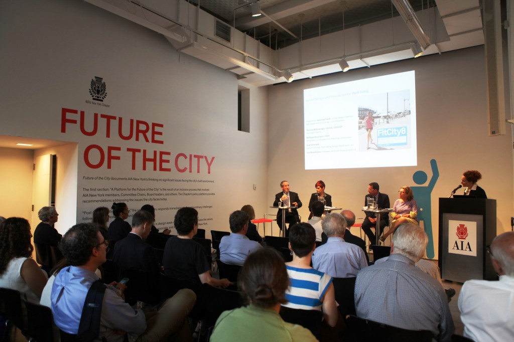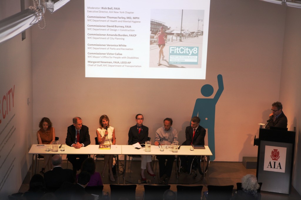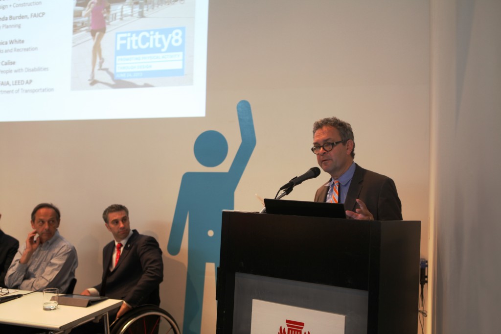 Observers looking into the Center for Architecture from the sidewalk on 06.24.13 may have inferred either that every talk given at Fit City 8 was deeply inspiring or that the audience was unusually excitable. From Mayor Bloomberg’s video introduction, to remarks by Deputy Mayor Linda Gibbs and the first keynote speaker – the World Health Organization’s Alex Ross – through the final summation by NYC Department of Design + Construction Commissioner David Burney, FAIA, each presentation ended in a standing ovation.