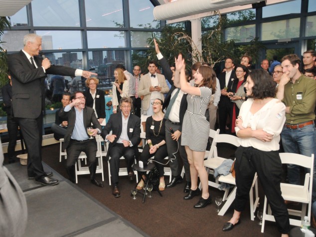 The Center for Architecture Foundation hosted its Third Annual Guess-A-Sketch benefit on 05.20.14 at Scholastic’s headquarters in SoHo. The view of the city from the rooftop terrace was stupendous, but the view inside was equally wonderful as Honoree Sketchers Brian Berry, AIA; Dean Maltz, AIA; Tomas Rossant, AIA; and Paula Scher created one-of-a-kind charcoal sketches of buildings and sites from around the world in this Pictionary-style drawing competition. Master of Ceremonies Guy Geier, FAIA, FIIDA, LEED AP, led the competing teams in this fast-paced tournament, giving them more and more challenging buildings to guess as the game progressed. The final sketch of the rock dwellings in Petra, Jordan, was guessed by the team from Arenson Office Furnishings, who took home the Guess-A-Sketch trophy as the 2014 champions. The team also took home this final sketch as the highest bidder in the Guess-A-Sketch silent auction that followed the game. An online auction of other selected sketches will be unveiled next week, so stay tuned!