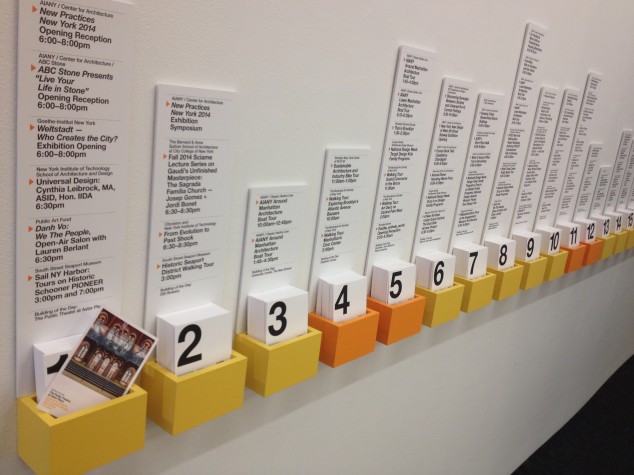 Tonight, we kick off the festival with the opening of “New Practices New York 2014,” an exhibition that presents the work of six young NYC-based architecture and design firms. If you couldn’t make it, be sure to stop by the Center for Architecture and check out their site-specific installations in our double height storefront and learn about their unique approaches to the field. While you’re here, don’t forget to head to the Pentagram-designed Archtober lounge to pick up your favorite Building of the Day postcards.