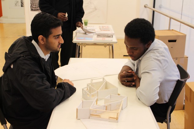 A group of design and architecture professionals volunteered to review the projects and talk to students. In an informal critique, students got the chance to present their ideas, ask questions, and receive feedback about their work. Students received valuable comments, and many were going to make revisions to their models and designs based on what they learned.