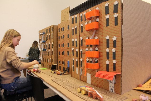 NYC parent Lenora Todaro, who home schools her three sons, first approached the Center for Architecture Foundation in 2010 hoping to enrich her children’s study of the Middle Ages by including a course on its architecture. CFAF staff worked with Todaro to craft a custom program that would enrich this existing curriculum and develop her children’s understanding of architecture and design, as we do with classroom teachers in our in-school program. The class was advertised through her home school networks, and a final group of 14 students met weekly at the Center for two months to build their own scale model of a medieval village. These weekly sessions not only introduced students to 3-D design and architecture concepts and skills, but also provided a chance for them to work collaboratively in a social setting.