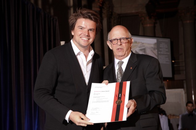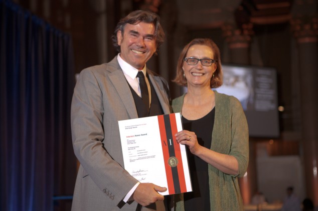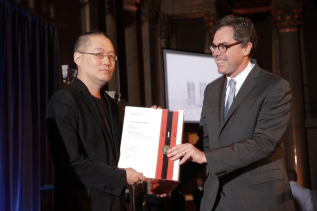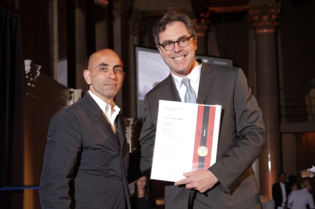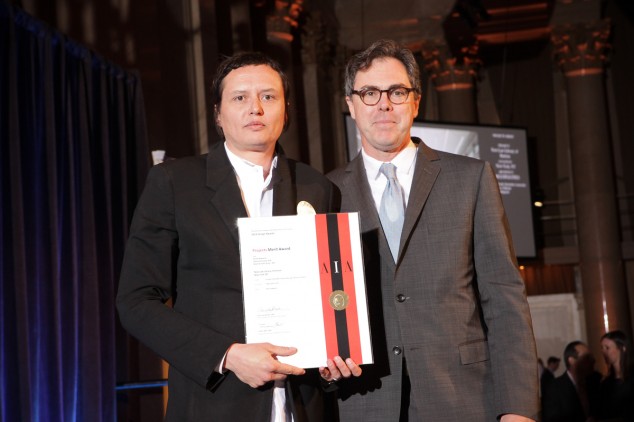 The AIA New York Chapter welcomed 736 guests to Cipriani Wall Street’s grand Beaux Arts hall to applaud this year’s three honorees and 35 AIANY Design Awards winners. A number of distinguished guests joined the annual celebration of design excellence in New York, including NYC Department of Housing Preservation and Development Commissioner Vicki Been; NYC Housing Authority Chair Shola Olatoye; NYC Department of Design + Construction Deputy Commissioner for Public Buildings David Resnick; NYC Department of Transportation Assistant Commissioner for Urban Design and Art Wendy Feuer;= Manhattan Deputy President for Policy and Budget Joseph Garba; and Robert Tierney; Hon. AIA, Chair of the Landmarks Preservation Commission. Washington Fajardo, special advisor for urban affairs for the mayor of Rio de Janeiro, sat with AIANY 2014 President Lance Jay Brown, FAIA.