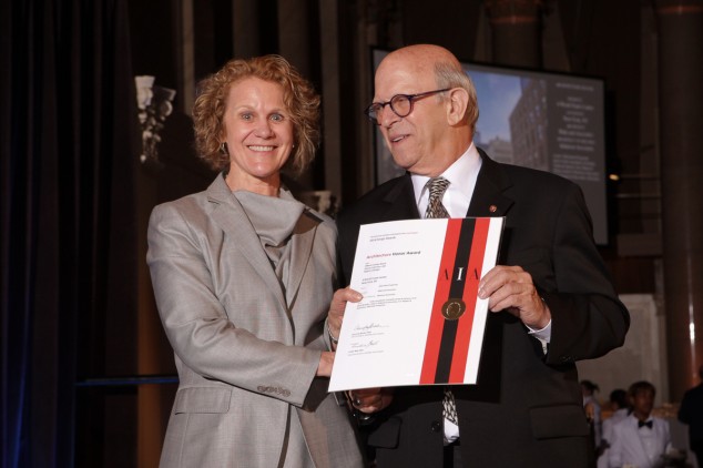 “If you’re ever going to get an award from the AIA New York Chapter, this was the year to do it.” No one can deny the truth spoken by honoree David Burney, FAIA, winner of the Chapter’s Award of Merit, in extolling this year’s impressive line-up for the Honors and Awards Luncheon, which included Metropolis Magazine Editor-in-Chief and publisher Susan Szenasy, Hon. AIANY, winner of the Stephen A. Kliment Oculus Award; Medal of Honor honorees Denise Scott Brown, RIBA, Int. FRIBA, and Robert Venturi, FAIA, Int. FRIBA; and a special keynote from Shaun Donovan, Hon. AIANY, Secretary of the U.S. Department of Housing and Urban Development.