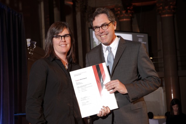 With a new-found belief that design matters, Donovan sketched out the road he believes architects should be taking, urging those in the room to continue their work on resilience. He used his experience working in communities that have been severely impacted by climate-related events as an incitement to action, stating, “Far too many times I’ve had to look into the eyes of families who in just a few seconds or minutes have watched their homes be destroyed…neighborhoods have been reduced to rubble, utilities washed away…entire communities destroyed.” Besides thanking AIANY for its leadership and applauding the AIANY Post-Sandy Initiative’s holistic approach to short-term recovery and long-term resilience, Donovan also gave a special shout-out to Merit Award Winner Burney, former NYC Department of Design + Construction (DDC) commissioner, current AIANY President for Design Excellence, and “fellow Brooklyn soccer dad, colleague in the Brooklyn administration, and friend.”