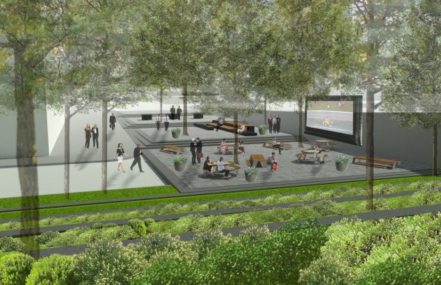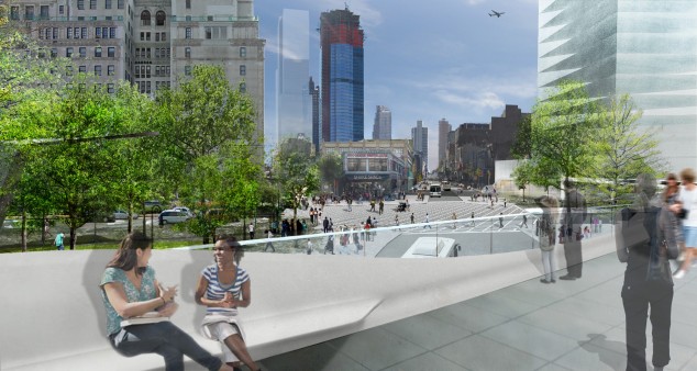 The Brooklyn Tech Triangle coalition commissioned an interdisciplinary team led by WXY Architecture + Urban Design to develop a strategic plan for the development of an area that stretches from Downtown to DUMBO to the Brooklyn Navy Yard. The developers, led by the Downtown Brooklyn Partnership, DUMBO Improvement District, and the Brooklyn Navy Yard Development Corporation, seek to make Brooklyn the next Silicon Valley. A “Special Innovation District” (SID) would give incentives for redeveloping industrial spaces. The plan includes 4 million square feet of office space for high tech companies. New transportation corridors, bike paths and footbridges, green spaces, and an observation platform fashioned after a hot-air balloon called “Brooklyn Rising” are also recommended. A proposed re-energized downtown would feature a café on Cadman Plaza along with a topiary arbor and a “tech terrace” with a huge digital screen. The SID would also incentivize redevelopment of industrial spaces. Read the full plan here.