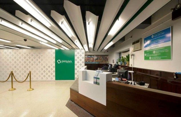 Through a pro bono collaboration between Bernheimer Architecture and d/b/A design-build, desigNYC has completed the renovation and refurbishing of the lobby and work spaces of the Lower East Side People’s Federal Credit Union (LESPFCU) in Alphabet City. The 1,468-square-foot renovation project incorporates architectural elements that help create a dynamic new look while keeping the bank’s homey feel. Functional improvements were made in the building’s organization, circulation, privacy, and lighting. The focal point is a partition made of Corian that provides security and privacy for the back-office area. Cut-outs allow the flutter of movement to be visible from the lobby area and vice-versa. A new plane of custom-made bent metal shrouds encasing state-of-the-art lighting fixtures generates a dynamic and illuminated surface and creates a unifying effect. desigNYC, a nonprofit organization whose mission is to improve the lives of New Yorkers through design, has completed or implemented 15 projects since the organization was founded in 2009. Donators included Osram Sylvania (expertise and lighting products), BartCo (lighting ballasts), Steelcase (file cabinets), and Teknion donated (an office desk).