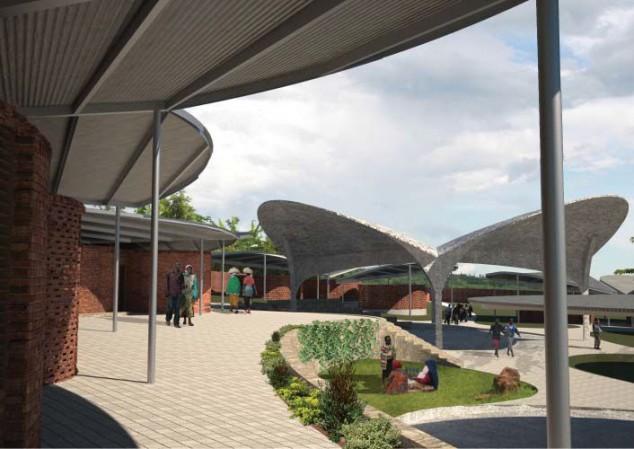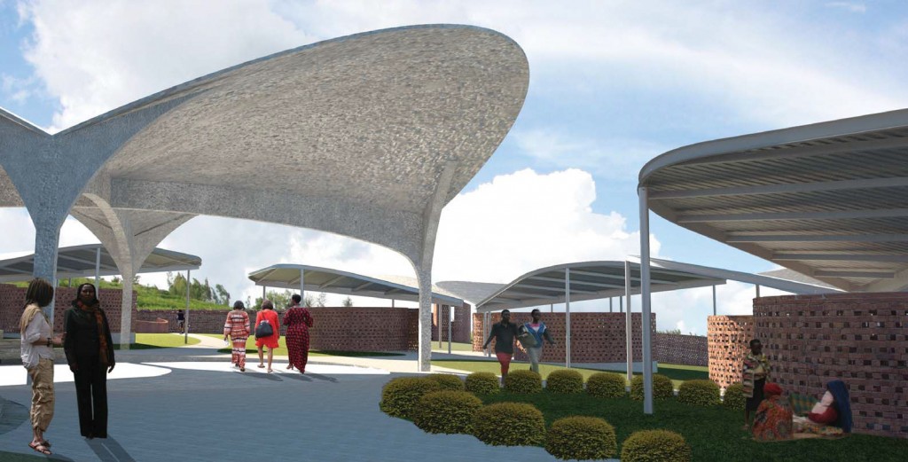 The Women’s Opportunity Center in Kaynonza, Rwanda, designed by Sharon Davis Design, is set to open and serve 300 women. Located on close to five acres of land, the center is based on a traditional Rwandan design with deep spatial and social layers. Its circular forms radiate from small classrooms at the center of the site to a community space and farmer’s market. The circular structures are modeled after the historic King’s Palace in southern Rwanda, whose woven-reed dwellings were part of a tradition that the region had all but lost. The new structures draw on the vernacular construction method with rounded, perforated brick walls that allow passive cooling and solar shading, while also maintaining a sense of privacy. Using materials found on site and employing a new, more durable manual press method adapted from local building techniques, approximately 450,000 clay bricks were manufactured by the women who have now learned a marketable, income-generating skill. By partnering with local enterprises, water purification, biogas, and other sustainable systems can be produced and maintained by the village’s residents.