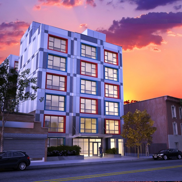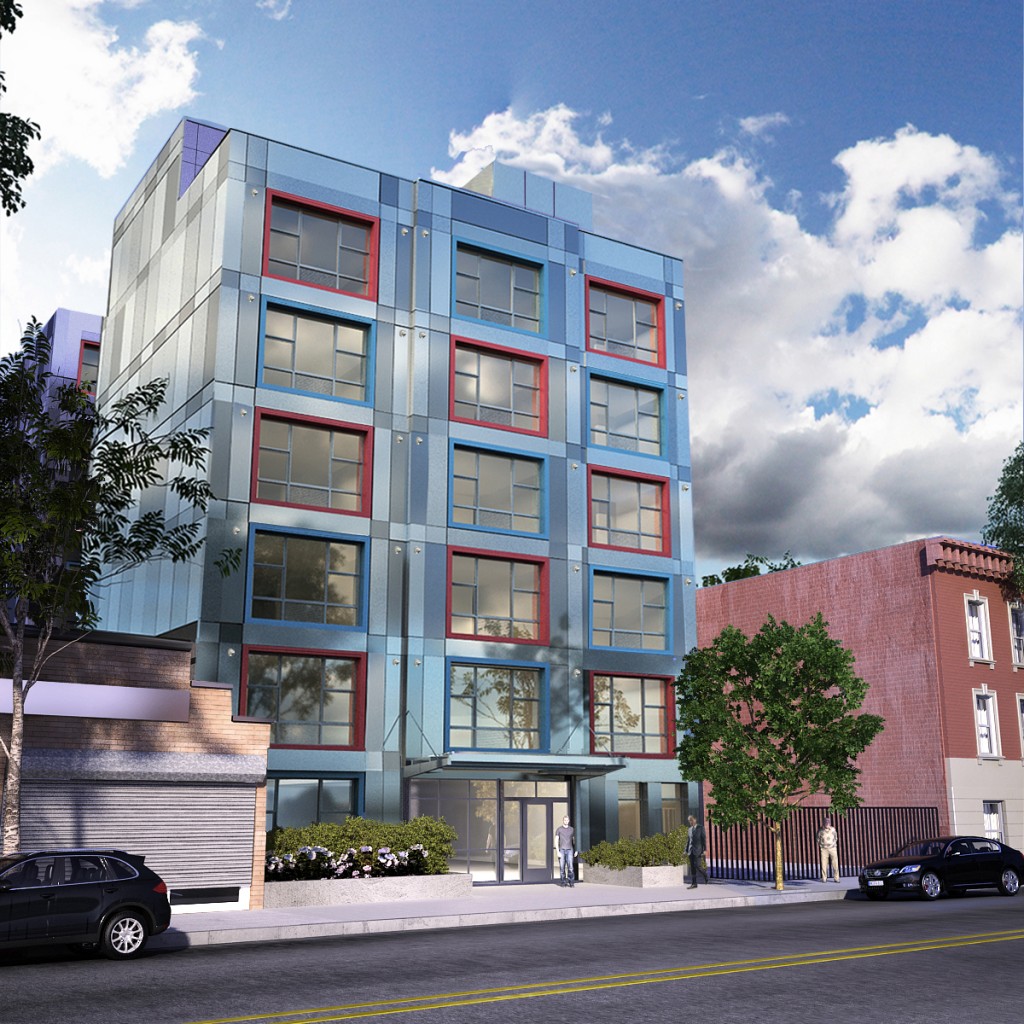 Construction has begun on 3361 Third Avenue, a modular, 37,102-square-foot supportive housing project designed by James McCullar Architecture. Located in the Morrisania section of the Bronx on a narrow but deep site, the seven-story U-shaped structure is organized around an inner courtyard. Both front and rear pavilions are connected by an elevator/stair lobby that overlooks the courtyard. The project contains 62 studio apartments, a super’s apartment, offices for social services, resident common spaces, a roof terrace garden for growing vegetables, and a landscaped rear yard. The modular units, of which there will be seven per typical floor, are being fabricated at Brooklyn Navy Yard-based Capsys, and will arrive at the site with completed apartment interiors. The modules are welded at load points to form a rigid superstructure supported on Cellar cast-in-place concrete walls. MEP risers are located along corridor walls, which are finished on-site. The façade consists of a panel system in four shades ranging from silver and gray to red, with blue windows surrounds on the module frontages. The project, developed through the NYC Department of Housing Preservation and Development’s Supportive Housing Loan Program and Low Income Housing Tax Credits, is a joint venture of Strategic Development and Construction Group, BronxPro Group, and Services for the Underserved (SUS), which will own and operate the project after completion.