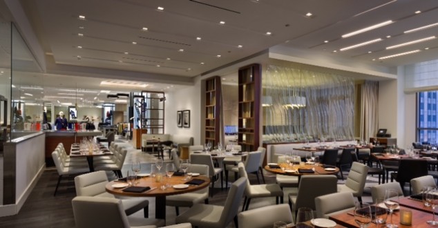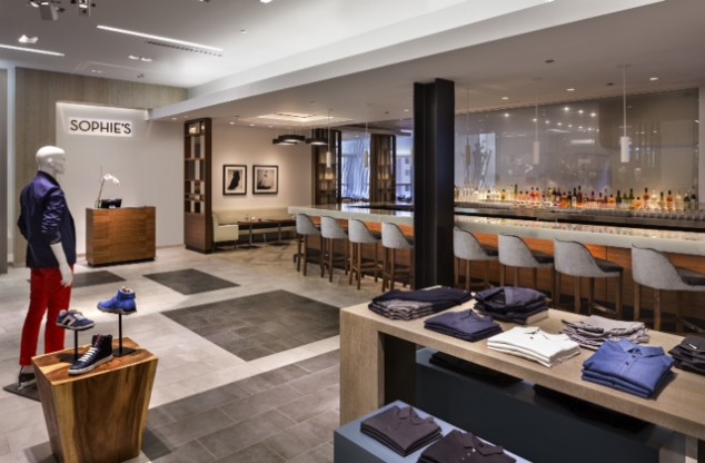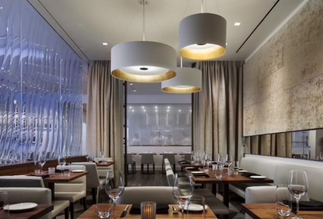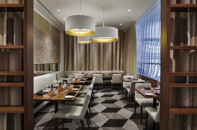 Andre Kikoski Architect recently completed Sophie’s, a 2,300-square-foot, 100-seat restaurant on the seventh floor of Saks Fifth Avenue on North Michigan Avenue in Chicago. The restaurant was named for and inspired by Sophie Gimbel, who, for more than 40 years, presided over couture at Saks. Her preference for flowing sculptural forms, rich patterning, and nuanced textures, were incorporated into the design. A bar and café lounge adjoins an open kitchen silhouetted by linen glass. Dressed in Saks’ signature black-and-white, the dining room offers views of a shimmering Lake Shore Drive at night. The private dining room is screened off by cascading rippled glass adorned in vintage velvet, white silk, and gold leaf. The project also features custom furniture and Swarovski lighting fixtures that were designed by the architect.