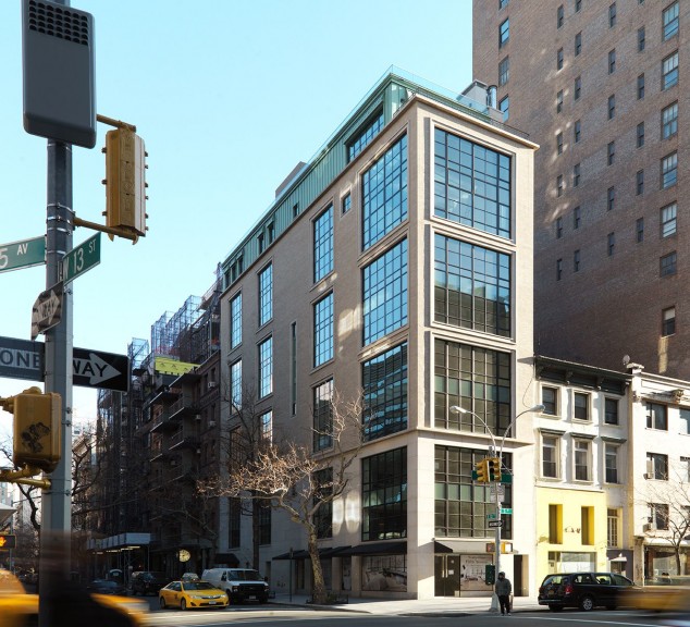 Alta Indelman Architect has designed a “modern classic” for the southeast corner of Fifth Avenue and 13th Street. Located on a narrow but deep footprint, the 10-story building is a contemporary interpretation of a Lower Fifth Avenue façade. The design is sympathetic to the architecture in the neighboring Greenwich Village Historic District. The façade makes use of historically accurate materials – Indiana Buff limestone, Deer Isle granite, and light-colored brick. At street level are a subdued residential entrance and a wrap-around-the-corner retail space. Four luxury residences consisting of three three-bedroom duplexes and one four-bedroom penthouse triplex are distinguished by their clear spans and articulated beams with high ceilings in between. Layouts are free of redundant circulation, and the efficient placement of mechanical systems allows maximum use of the apartments’ 25-by-100-foot floor plate.
