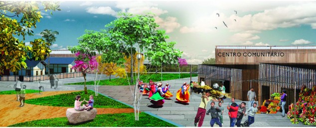 The New York, San Francisco, and Guayaquil offices of Perkins Eastman have teamed up with the charitable foundation Hogar de Cristo to create a 1.3 million-square-foot mixed-use development in the western portion of the Ecuadorian city. The project is a result of the firm’s eighth annual In-House Design Competition, and the final plan is a combination of winning ideas presented by two employees – Isabel Aguirre-Martinez, an urban planner who works at an affiliate, BFJ Planning, in the New York office, and Justin Skoda, an intern architect in the San Francisco office. Called San Alberto Hurtado, the project includes homes of slightly more than 270 square feet distributed over several micro-neighborhoods, which will provide housing for approximately 460 families. At the site’s civic core are public plazas, park space, offices, commercial and transit connections, and a school and nursery.
