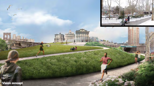 After more than a year of planning, walk-throughs with more than 30 local organizations, stakeholders’ working groups, and a community board public workshop and meeting, the Brooklyn Strand, designed by WXY architecture + urban design is gaining traction. The multi-faceted plan is for a 21-acre linear greenway that will connect Downtown Brooklyn to the Brooklyn Bridge Park waterfront through a reimagined series of disconnected parks, plazas, and greenways, and has the potential to become a great promenade and gateway to Brooklyn. The plan hopes to rectify the ills caused by urban planning, re-stitch the urban fabric, recreate neighborhood connections, advance equity through public investments in open space, and identify and create opportunities for affordable housing development. The project is designed in collaboration with Mathews Nielsen Landscape Architects, Sam Schwartz Engineering, and Domingo Gonzalez Associates, and is an initiative of the NYC Office of the Mayor, Downtown Brooklyn Partnership, NYC Department of Parks and Recreation, and Brooklyn Bridge Park.
