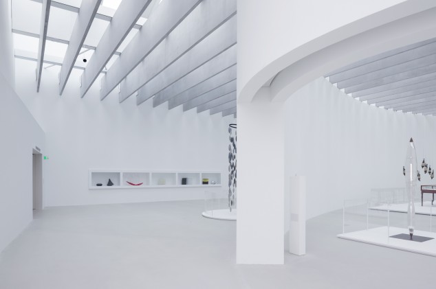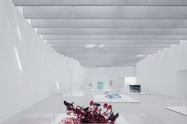 Designed by Thomas Phifer and Partners, the Corning Museum of Glass in Corning, NY, recently opened the doors of its new Contemporary Art + Design Wing, which is the largest space in the world devoted to the display and creation of contemporary art and design in glass. The façade of the 100,000-square-foot gallery building is constructed of large, white glass panels that create a nearly seamless, softly reflective expanse; the interior is simple, restrained, and white. The Five galleries of varying sizes are defined by massive, curvilinear concrete walls, which serve as the supports for the skylight roof. A system of roof skylights and overhead lighting provides optimal lighting conditions for works in glass. Four-foot-tall by three-a-half-inch-thick concrete beams rest on the curved gallery walls, and diffuse the light as it comes through the skylights, directing it to the floor where the glass is displayed. Electric track lighting is programmed to complement and spotlight the art by adjusting to changes in exterior natural light levels. All of the large-scale sculptures and installations are surrounded by specialty glass barriers made of Corning® Gorilla® Glass. Engineered by Corning for display decks designed by Thomas Phifer and Partners, and fabricated by Kubik Maltbie, this is the first time the damage-resistant, thin, and optically-pure glass is being used for this purpose. The display also extends onto the porch space that wraps around the the galleries, providing additional display space. A 140-foot-long window offers views out onto the new one-acre museum green. In addition, the wing contains the 500-seat Amphitheater Hot Shop for glass-blowing demonstrations set inside the renovated Steuben Glass factory building, and features a balcony running around the perimeter of the shop. Other members of the design team include Arup (daylighting and lighting design), Reed Hilderbrand (landscape architecture), Guy Nordenson & Associates (structural engineer), and Gilbane & Welliver (construction management).