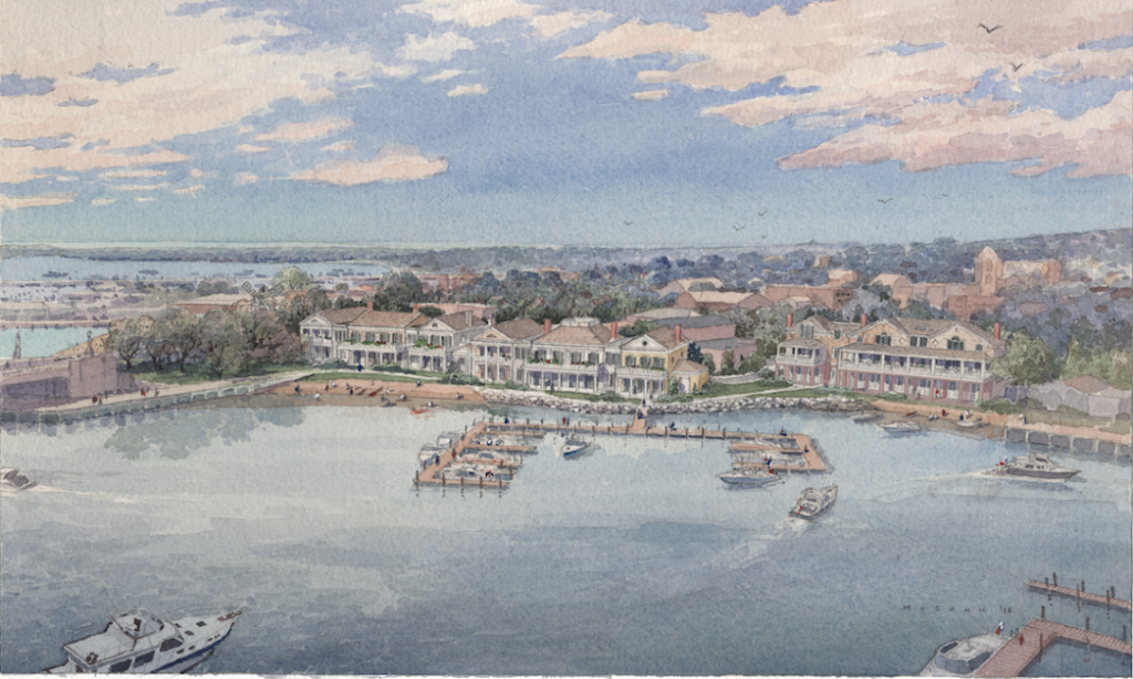 Robert A. M. Stern Architects has also been selected as the design architect for a 30,000-square-foot, gated-entry residential project in Sag Harbor, Long Island. Located at the eastern end of Sag Harbor Cove on the last undeveloped waterfront land adjacent to the town’s business district, the project consists of 11 residences. A staggered row of eight adjoined single-family homes clad in clapboard and cedar shakes is designed to evoke the streetscape of an early 19th-century New England whaling village. An existing building will be reinterpreted from the inside-out based on the model of a Shingle Style stable to accommodate three additional residences, each with its own entry. Also include are water-facing porches sized for dining and entertaining, roof-deck plunge pools, individual garages, and a landscaped yard\that descends to the water, complete with a new dock and 11 boat slips. Developed by Greystone Property Development and East End Ventures, the project is expected to be completed by early 2018.