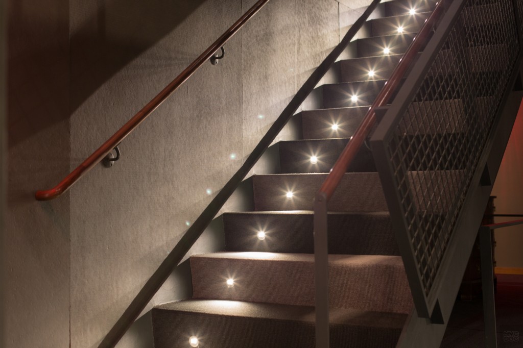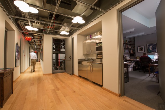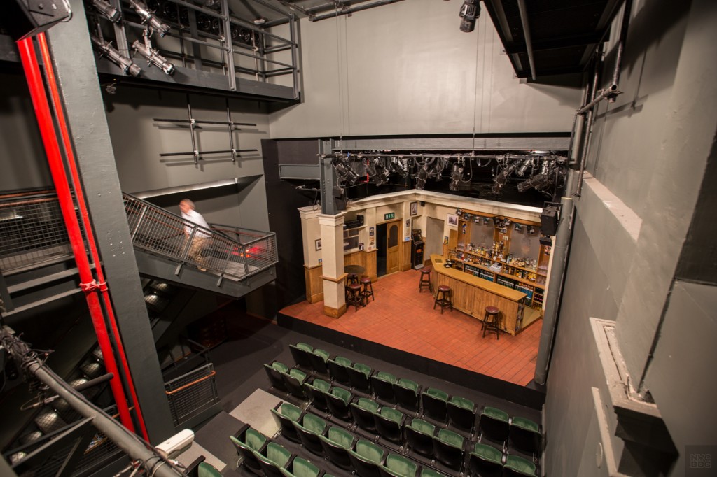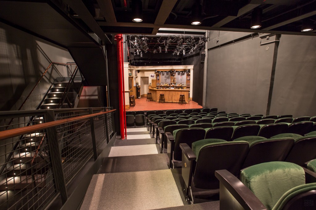 The Irish Repertory Theatre kicked off its 2016-17 season by cutting the ribbon on its newly renovated space in a renovated warehoiuse at 132 West 22nd Street. Working with the NYC Department of Design + Construction (DDC), Garrison Architects undertook a comprehensive renovation of the 8,240-square-foot theater, including all performance and back-of-house spaces. The renovation added 250 square feet of space and widened the stage, backstage, and storage areas. A new 40-seat balcony replaces the theater’s old side seating section, providing unobstructed views of the stage. The height of the performance area has been nearly doubled to 27 feet from ground level, and new catwalks help increase lighting capacity by 60%. A gallery space, two offices, and new bathrooms were also installed on the second floor. Additional improvements include an enhanced audio/visual room that controls a new automated turntable on the stage. Lighting has been added underneath the stairs for increased visibility within the theater. The project also includes upgrades to mechanical, electrical, HVAC, and plumbing systems ,and is designed to achieve LEED Silver certification.