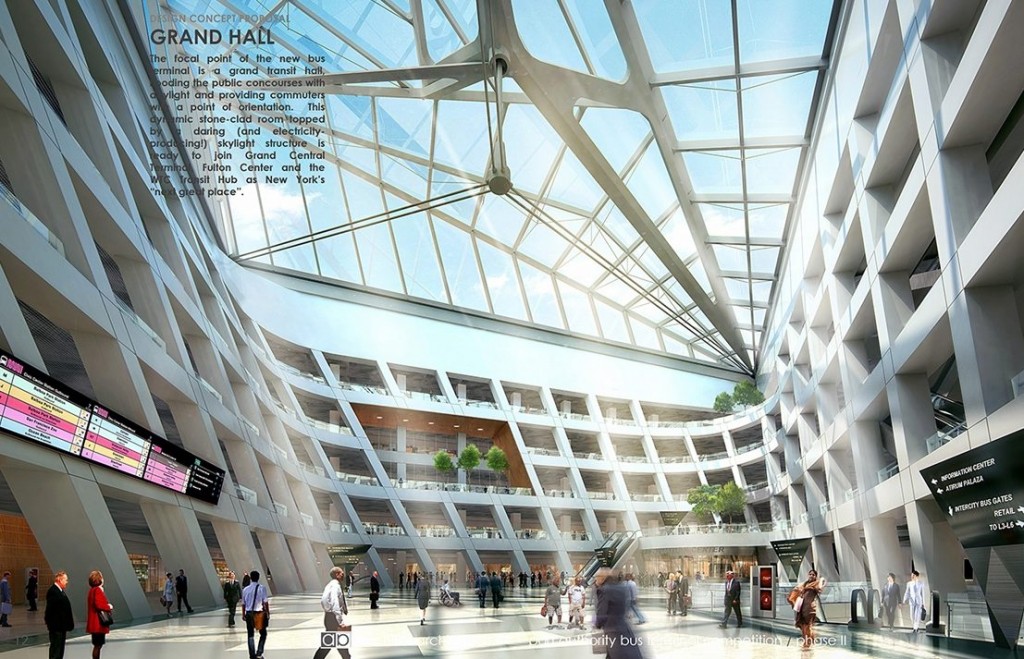 The Port Authority of New York and New Jersey (PANYNJ) has announced the five finalist teams in the two-stage Port Authority Bus Terminal International Design + Deliverability Competition. One of the new schemes might replace the 65-year-old bus terminal, which is ill-equipped to handle the needs of 21st century passengers. The winning conceptual designs must be scalable and modular and deliver an appropriate level of service to meet bus passenger demand, improve functionality for bus parking and staging, minimize traffic impact on surrounding streets, and sustain safety and security. Additionally, the winning conceptual design must recognize the role of a new bus terminal in the interstate transportation network, address both commuter and long-distance markets, and consider the new terminal’s compatibility with other trans-Hudson transportation operations and investments. The finalists and their proposed plans are Arcadis of New York, Archilier Architecture Consortium, Hudson Terminal Center Collaborative, Pelli Clarke Pelli Architects, and Perkins Eastman. PANYNJ and West Side elected officials reached an earlier agreement endorsing “a new expanded, comprehensive planning process.” After a protracted battle with community members over the plans, PANYNJ will use the five conceptual designs to inform the planning process and will be included in “a larger universe of planning options to be considered.”