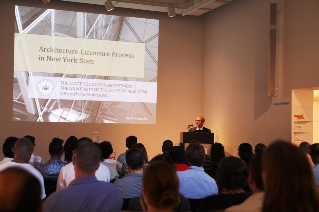 The Emerging New York Architects Committee’s (ENYA) annual Got License? event brought representatives from the National Council of Architectural Registration Boards (NCARB) and the New York State Office of the Professions to the Center for Architecture. Robert Lopez, executive secretary for the NYS Board of Architecture, explained the specific licensure requirements within New York State, highlighted statewide licensure trends, and presented various paths to licensure.