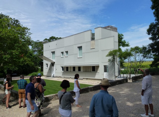 Well veiled, the destination at the end of the street led many too far. Only after returning on a dirt road did a unique awning peek above the shrub and fence line. A sold-out tour gathered neighbors and city-dwellers alike who soon followed Lee Mindel, FAIA, through his grounds and home that subtly combine local references and modern sensibilities to great effect.