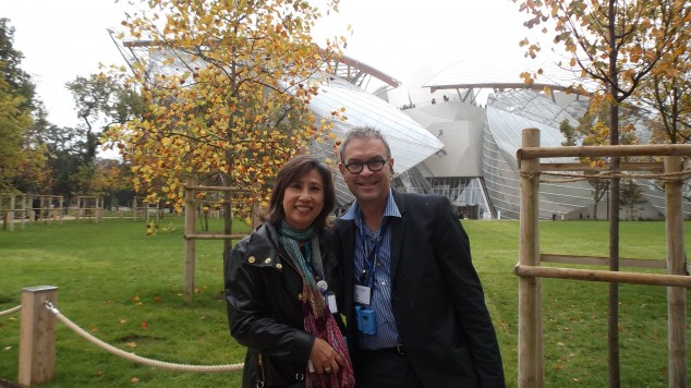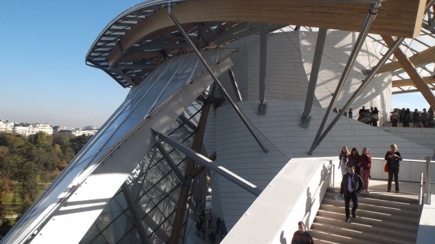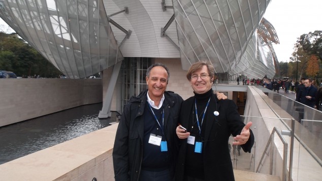 For many present, the highlight of the Paris convocation was a visit to the much-publicized cultural “vessel” in the Bois de Boulogne created by Gehry and team for the cultural foundation created by Bernard Arnault and LVMH. An intersection of sail-like shed roofs and prismatic icebergs, the endearing “nauffrage” is animated by an exhilarating series of interconnected exterior stairs and terraces. The latter offer panoramic views of the perimeter park and the not-too-distant city, and complement a well-lit collection of artwork, including newly-commissioned work by Ellsworth Kelly.