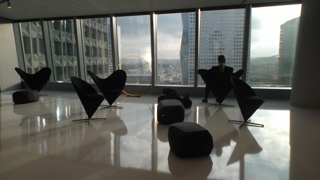 But it was also good to break away in the City of Vélib to see the new, intensely active installation by Diller Scofidio + Renfro, called “Musing on the Glass Box,” at Jean Nouvel’s Fondation Cartier, also celebrating its 20th anniversary. The temporary show, done in collaboration with David Lang and Jody Elff, whimsically reflects on the original architecture, and remains open until 02.22.15. You can scoot under a low, luminous ceiling on a chaise longue roulante.