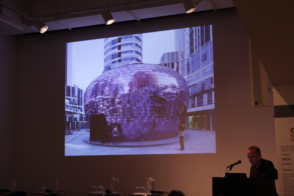 Hayes Slade, AIA, of Slade Architecture also spoke of the plus side of working in a foreign culture. Slade’s project for Mattel’s Barbie Shanghai benefited from less expensive Chinese production and featured an interior of molded polycarbonate and custom-designed furniture. A fritted glass storefront features Barbie iconography with LED strips. Slade believes that Mattel chose a small firm over a large one to avoid having an established name overshadow its brand. (This project won an Interiors Merit Award in the 2012 AIANY Design Awards.)