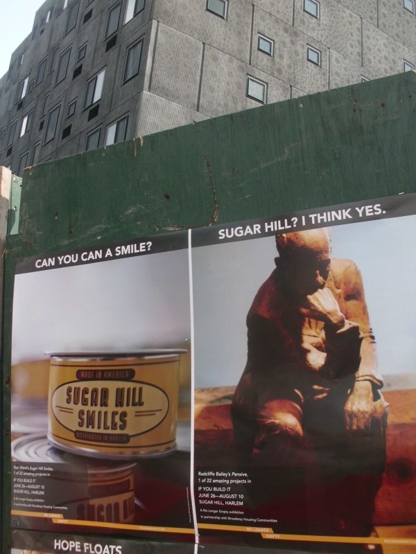 A high point of the installation was the installation by artist Nari Ward of Sugar Hill Smiles cans, which captured the good feelings about the project in the neighborhood. Souvenir cans are still on sale, and proceeds will go to support Broadway Housing Communities’ educational programming. No Longer Empty is also encouraging those who visited the exhibition to complete the “If You Build It” survey to share your experiences.