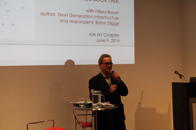 The June Oculus Book Talk was introduced by AIANY Executive Director Rick Bell, FAIA, who presented a short, well-produced film on the newly opened “Open to the Public: Civic Space Now” exhibition at the Center for Architecture. The film features AIANY 2014 President Lance Jay Brown, FAIA, speaking about the Center’s commitment to civic space, and served as an adept way to usher in Hillary Brown’s extensive research in and around civic space. Brown’s talk was entitled “Future Proofing,” which is an evocative tag line for her line of inquiry. What Brown sets up in her lecture as well as her book, Next Generation Infrastructure: Principles for Post-Industrial Public Works, are a series of projects and consequences that can be described as “solving for pattern,” an analysis technique coined by environmentalist Wendell Berry. The phrase gets to the core of Brown’s interests. She starts and ends her book with Minnesota’s 2007 I-35W bridge disaster, and begins her inquiry by quoting from the book Natural Capitalism: “you can actually make a system less efficient while making each of its parts more efficient…” This is the tragedy of the I-35 incident. Multiple municipalities were not acting as a whole to maintain the bridge. And this is the genesis of Brown’s research for examining infrastructure projects globally.