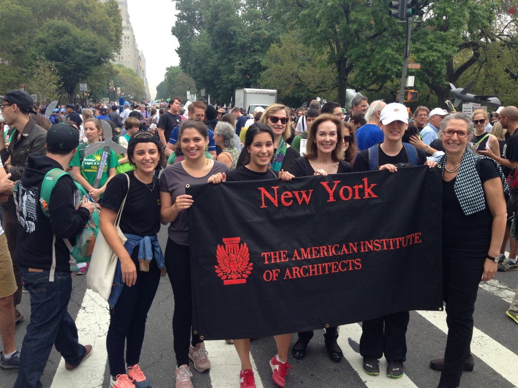 Eventually, the march proceeded. After heading down Central Park West to Columbus Circle, marchers moved east on 59th Street, down 6th Avenue to 42nd Street, west on 42nd Street to 11th Avenue, and then south to 34th Street. The enthusiasm throughout the march was inspirational. AIANY maintained the momentum with Ed Mazria’s presentation at the Center for Architecture on 09.23.14, and will continue with related events and policy initiatives.