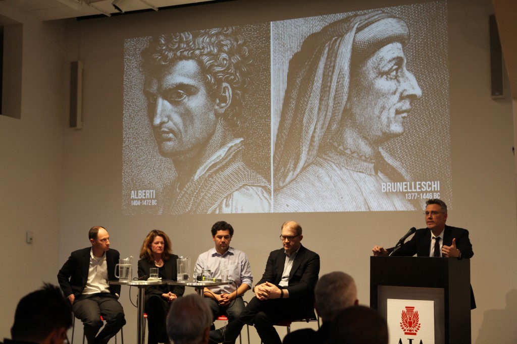 In the third of the series “Dialogues from the Edge of Practice,” AIANY 2015 President Tomas Rossant, AIA, provoked the speakers and audience by comparing Alberti “the delineator” (theory) to Brunelleschi “the maker” (practice). Both expanded the field of architecture, one by showing what could be done and the other by doing it. Their innovations in practice, Rossant claimed, show that “business should be seen as a design problem.”