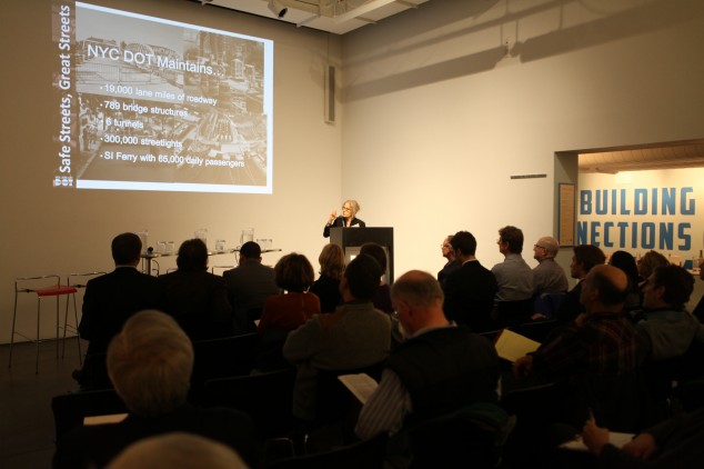Under its Vision Zero plan, New York City aims to eliminate all traffic fatalities using urban design tactics to improve pedestrian safety. On 03.02.15, the Center was fortunate to host NYC Department of Transportation’s (DOT) leaders Wendy Feuer, Ann Marie Doherty, Josh Benson, Juan Martinez, and Neil Gagliardi, who were on hand to discuss their approach to safety and design on the city’s streets.