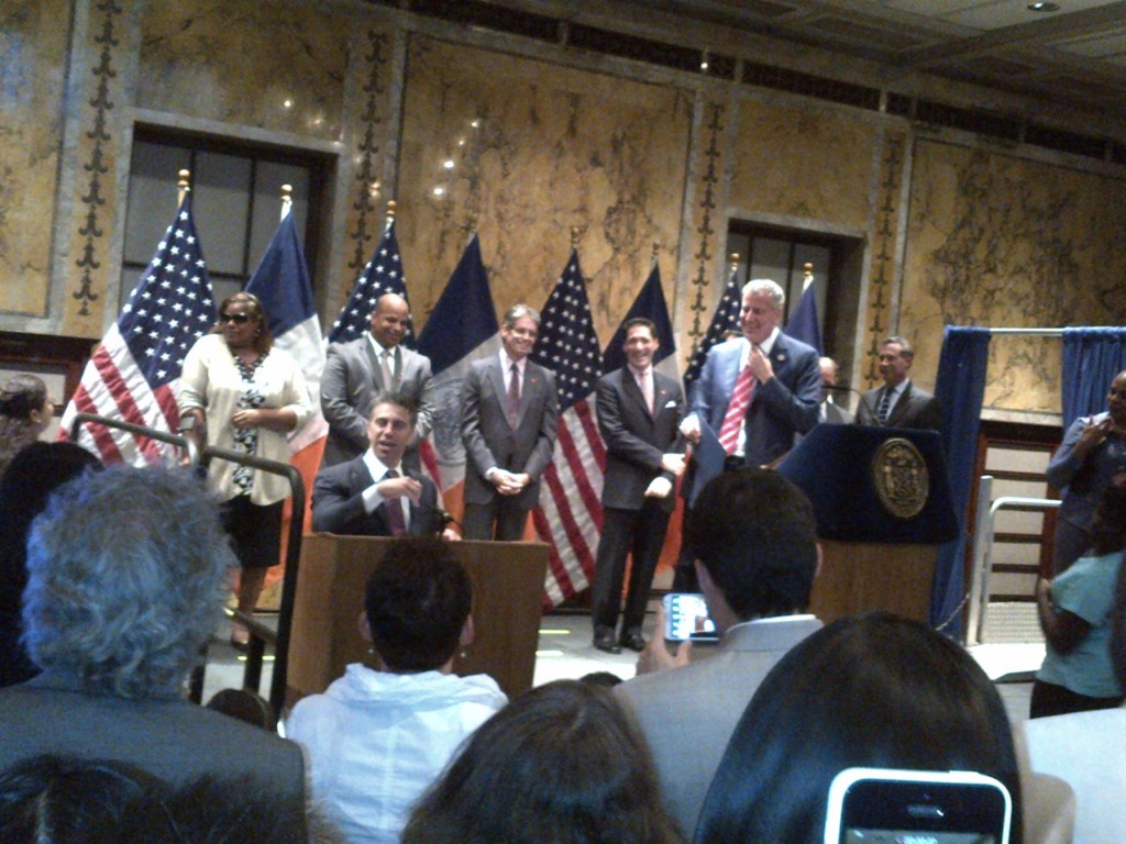 Signed in 1990, the Americans with Disabilities Act (ADA) has fostered independence, empowerment, and inclusion for millions of Americans. On 08.19.14, Anthony Marx, the president of the New York Public Library, welcomed Mayor Bill de Blasio, Mayor’s Office for People with Disabilities (MOPD) Commissioner Victor Calise , a few hundred friends and well-wishers, and the winners of the 2014 ADA Sapolin Awards. The awards, presented each year by the mayor and MOPD, recognize individuals and organizations that have made significant contributions to increasing accessibility for people with disabilities, and an Advocacy Award to an individual or entity that has advocated on behalf of people with disabilities. The ADA Sapolin Awards are named for the late MOPD Commissioner Matthew Sapolin, who passed away in 2011, and the Advocacy Award is named in honor of the late Frieda Zames, a disability activist and mathematics professor at the New Jersey Institute of Technology in Newark.