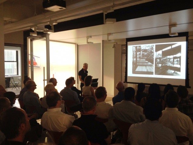 06.26.13: On 6.26.13 at the Center for Architecture, officials from the Department of City Planning Chris Holme, Howard Slatkin, and Tom Wargo presented the proposed Flood Resilience Zoning Text Amendment, enabling buildings within the 100-year flood zone to be designed in accordance with higher predicted flood elevations.