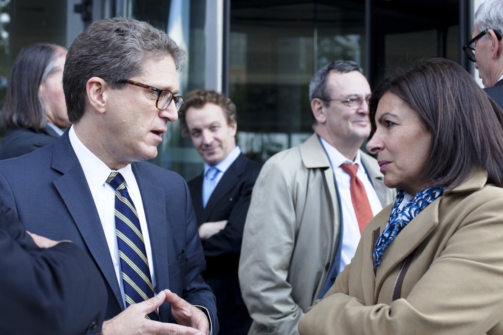 07.09.2013: James von Klemperer, FAIA, Design Principal at Kohn Pedersen Fox Associates, and First Deputy Mayor of Paris Anne Hidalgo deep in conversation at the groundbreaking ceremony for the firm’s 8-story office building, PDM 3, located in the Parc du Millénaire in Paris.