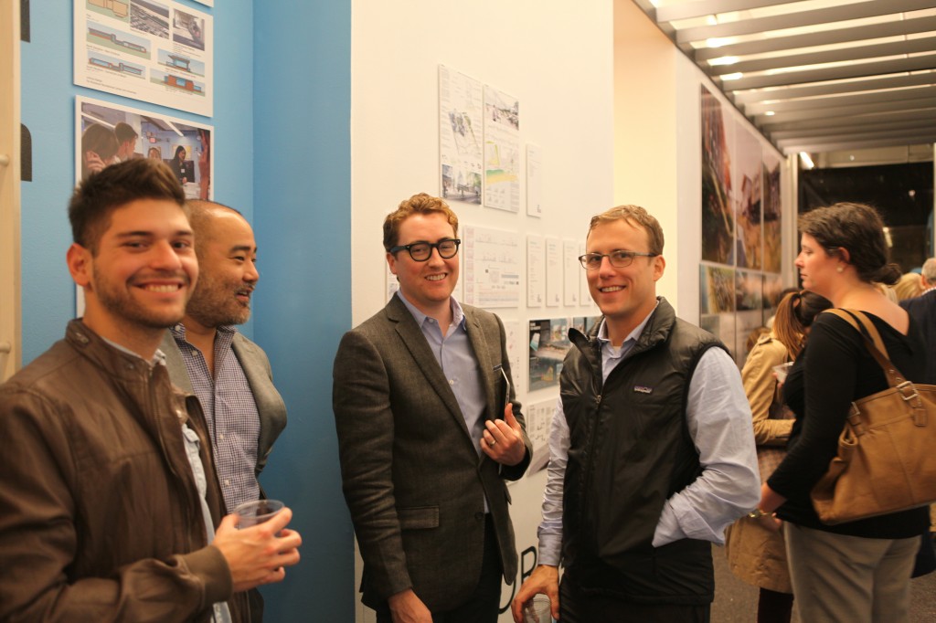 11.07.13: (l-r) Jorge Arias, Brian Masuda, AIA, Andrew Burdick, AIA, LEED AP, and Brad Groff, AIA, of Ennead Architects attended the “FAR ROC: For a Resilient Rockaway” opening at the Center for Architecture.