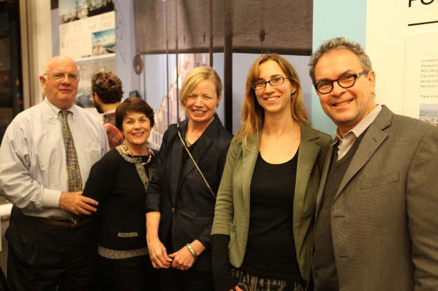 11.07.13: Madeline Burke-Vigeland, AIA, and Jessica Sheridan, AIA, LEED AP, from Gensler represented the winning team at the exhibition opening for “FAR ROC: For a Resilient Rockaway”. (l-r): Judith Hunt; Walter Hunt, FAIA, Past President, AIANY and CFAF; Madeline Burke-Vigeland, AIA, Gensler; Jessica Sheridan, AIA, LEED AP, Gensler; Rick Bell, FAIA, AIANY Executive Director