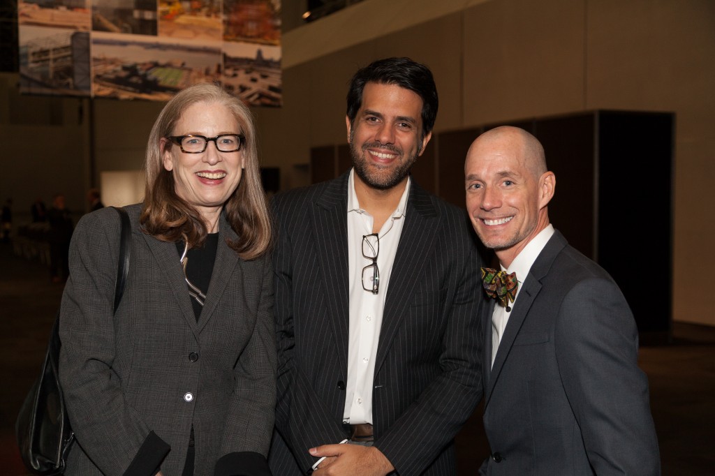 11.11.13: FXFOWLE’s recently completed renovation of the Jacob K. Javits Convention Center was celebrated by firm members and friends. (l-r) FXFOWLE Senior Partner Sylvia Smith, FAIA, LEED; Gustavo Rodriguez, AIA, LEED, Senior Associate (Javits Center Design Team); and Brien McDaniel, Director of Communications and Associate.