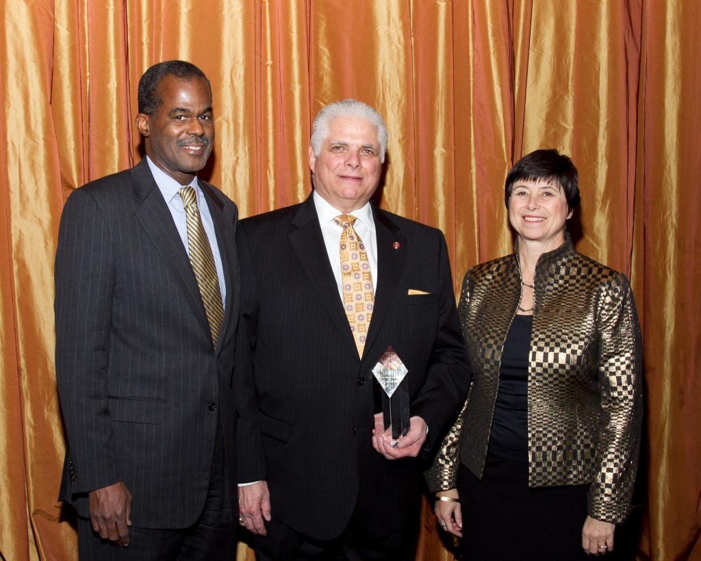 11.12.13: Terrence E. O’Neal, AIA, Vice Chairman of the New York Building Congress (left), and AIANY 2013 President Jill N. Lerner, FAIA (right), congratulated Anthony P. Schirripa, FAIA, IIDA (center), Chairman and CEO of Mancini•Duffy/TSC, for his recognition at the New York Building Congress 2013 Industry Recognition Dinner.