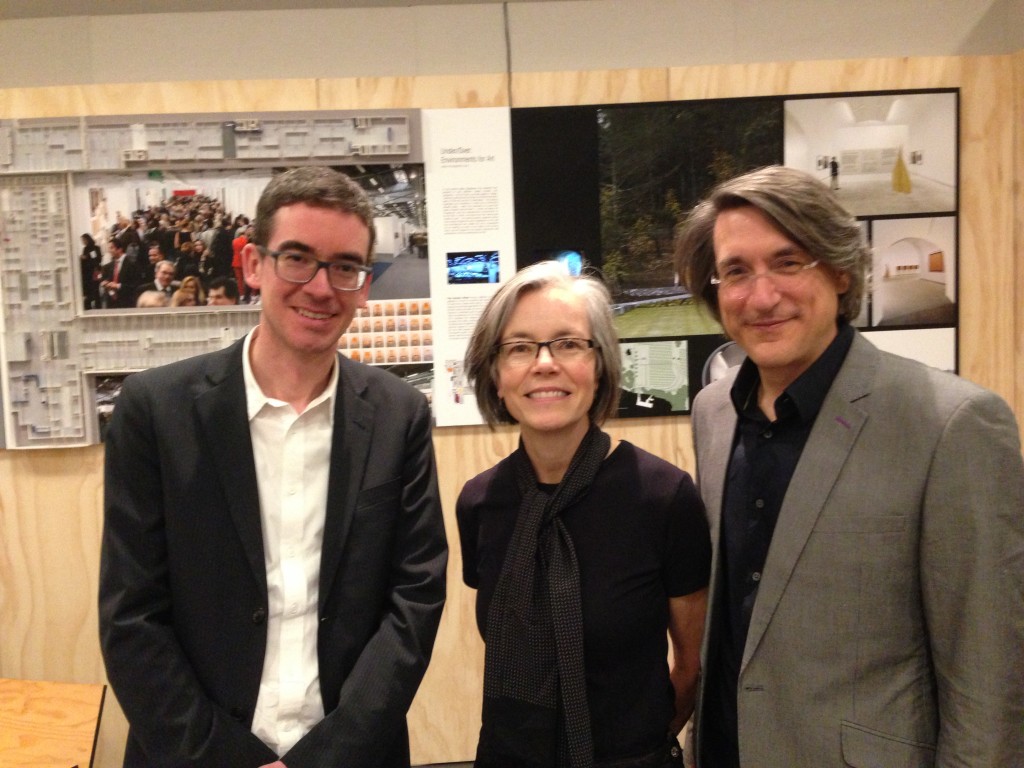 11.14.13: Artworks by National Academy School faculty and students were on display at “Projects in Contemporary Art & Architecture: Between Vision and Function,” on view through 01.15.14. (l-r) Martin Cox, AIA; Jane Stageberg, AIA; and Tim Bade, of Bade Stageberg Cox.