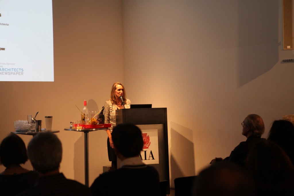 11.15.13: Laura Marlow, Director of Business Development and Strategic Partners at Reed Construction Data joined Cocktails and Conversations from Atlanta and introduced the speakers for the evening, William Pedersen, FAIA, of Kohn Pedersen Fox Associates, and Carol Willis of The Skyscraper Museum.