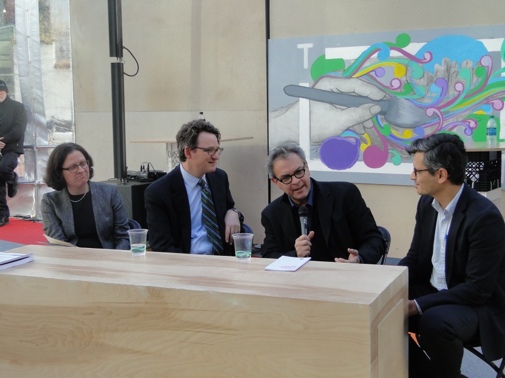 11.19.13: The Municipal Arts Society organized “Rethinking Regulation: New Priorities for City Building” at the Talking Transition tent, a conversation between Jessica Yager, Policy Director, NYU Furman Center; Andy Wiley-Schwartz, Assistant Commissioner for Planning and Sustainability, NYC Department of Transportation; Rick Bell, FAIA, AIANY Executive Director; and moderator Raju Mann, Director of Planning, MAS.