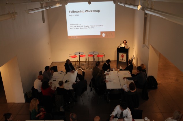 05.22.14: The Fellows Workshop, organized by the AIANY Fellows Committee and AIANY Membership Director Suzanne Mecs, Hon. AIA NYS (shown below), deconstructed the elements in the national jury submission, and provided guidance to national and local resources that can help those wishing to apply to the AIA College of Fellows.