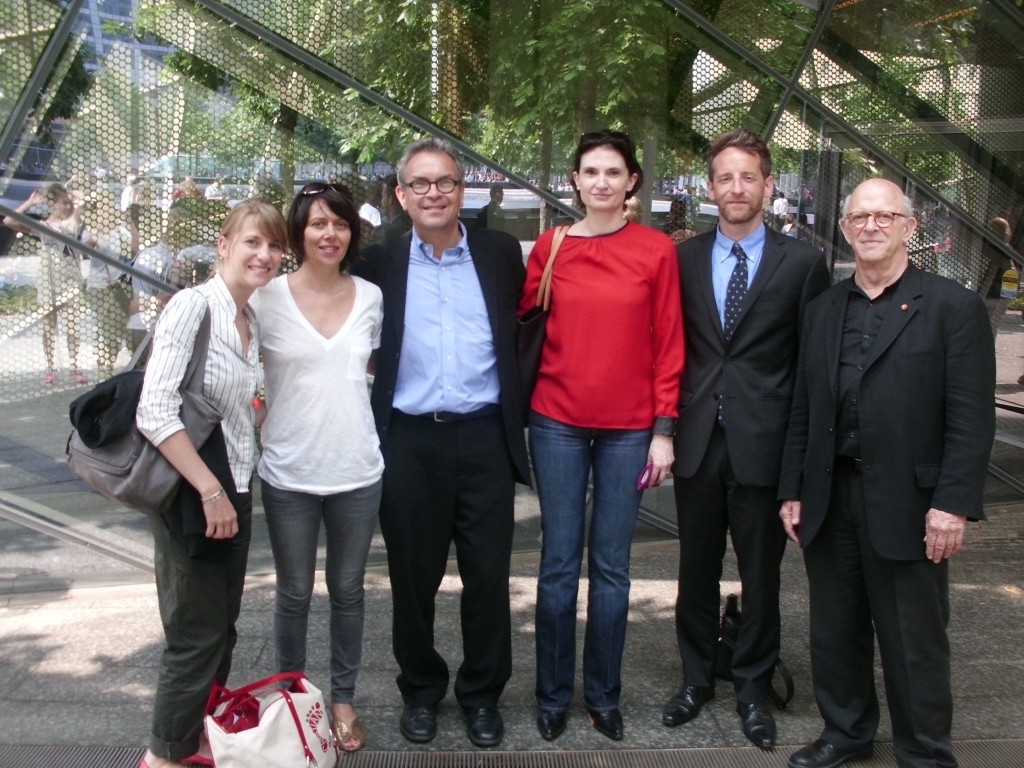 06.13.14: AIANY Executive Director Rick Bell, FAIA, and AIANY 2014 President Lance Jay Brown, FAIA, joined members of the French Embassy Emilie Cabouat, Dorothée Charles, Sophie Claudel, and Thomas Michelon on a tour of the 9/11 Memorial Museum.