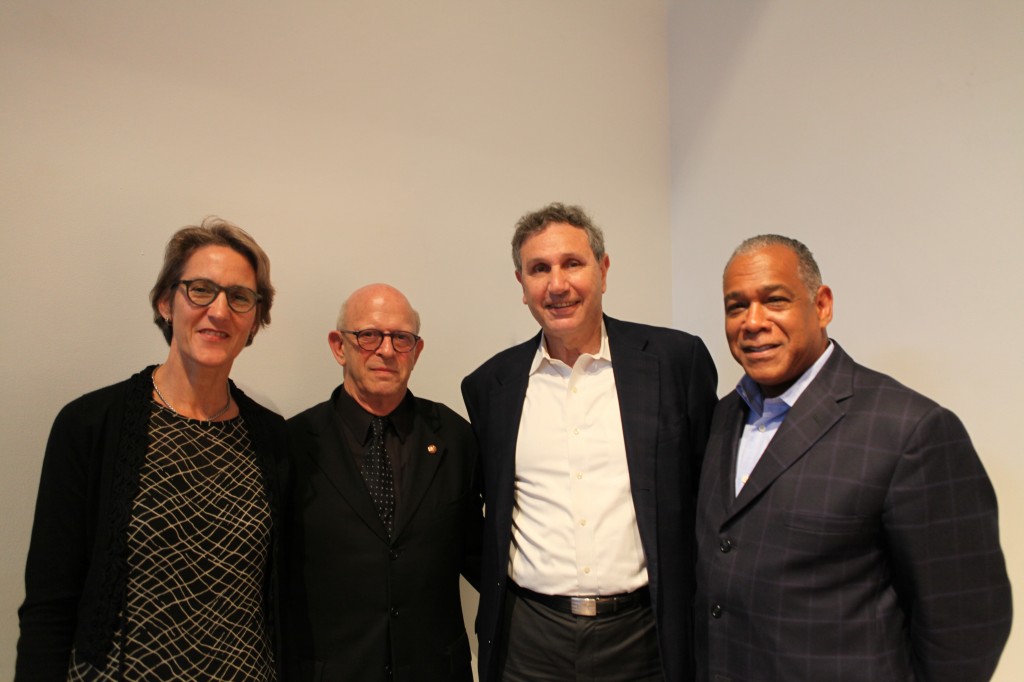 06.14.14: Chrisitine Bram, Executive Director of the Office of Parks and Open Spaces for the City of Zurich; AIANY 2014 President Lance Jay Brown, FAIA; NYC Planning Commission Chair Carl Weisbrod; and Mitchell Silver, NYC Department of Parks and Recreation Commissioner, talked public space at the “Open to the Public” symposium.