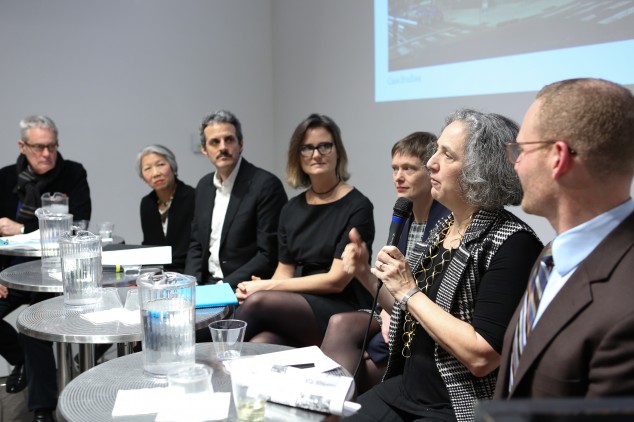 02.25.16: Developed by the Design Trust for Public Space and the NYC Department of Housing Preservation and Development, Laying the Groundwork presents guidelines for high-quality, ground-floor design in mixed-use affordable housing developments. Invited by AIANY Interiors Committee and Design Trust for Public Space, key participants presented the design guidelines to the public. (l-r) Bill Menking, Founder and Editor-in-Chief, The Architect’s Newspaper; Susan Chin, FAIA, Hon. ASLA, Executive Director, Design Trust for Public Space; James Slade, FAIA, LEED AP, and Hayes Slade AIA, Principals, Slade Architecture, and Architecture Fellows, Design Trust for Public Space; Fiona Cousins, PE, CEng, LEED Fellow, Principal, Arup, and Engineering Fellow, Design Trust for Public Space; R. Darby Curtis, AIA, Partner, Curtis + Ginsberg Architects; Eric Wilson, Assistant Commissioner of Planning and Sustainability, NYC Department of Housing Preservation and Development